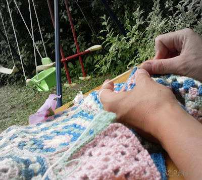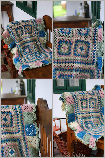 A nyáron a “vesti”kötése mellett, ezt a takarót horgoltam. Eddig azért nem szerettem volna megmutatni Nektek, mert egy új családtag érkezésére szántam. Mivel a héten kirepült a takaró Izlandra és a kis tulajdonosa már birtokba is vette, nem kell már eltitkolnom.
