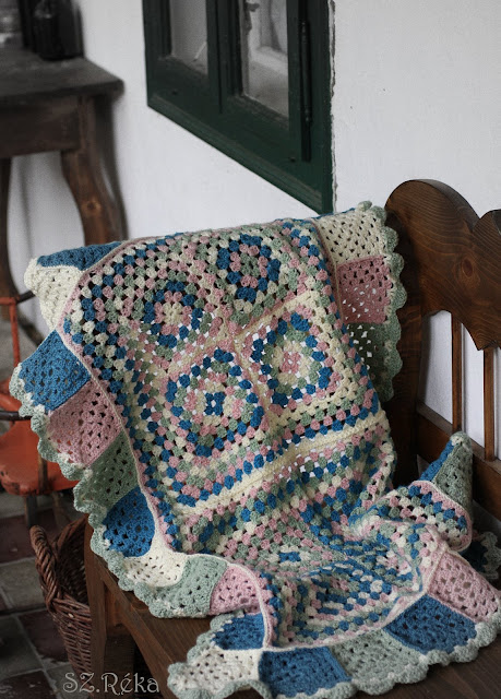 A nyáron a “vesti”kötése mellett, ezt a takarót horgoltam. Eddig azért nem szerettem volna megmutatni Nektek, mert egy új családtag érkezésére szántam. Mivel a héten kirepült a takaró Izlandra és a kis tulajdonosa már birtokba is vette, nem kell már eltitkolnom.