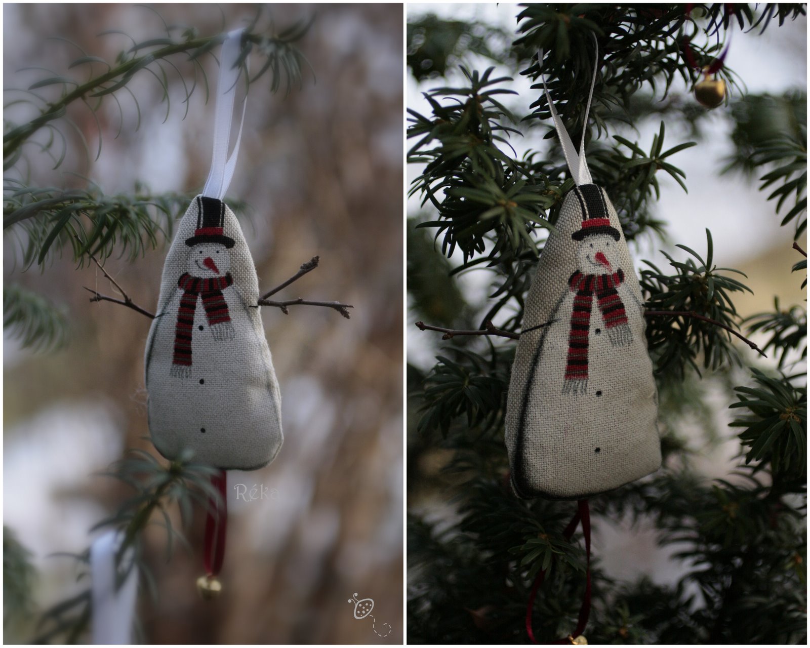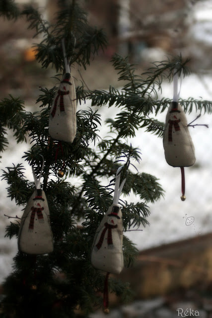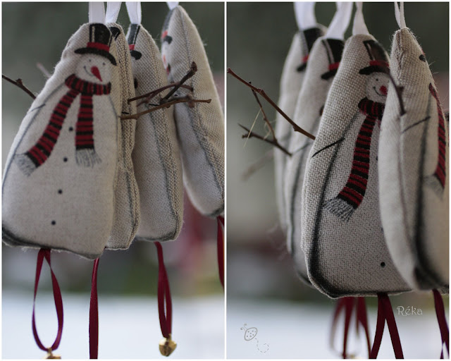 Volt egy csík anyagom, elszórtan 4 db hóemberrel. Emlékszem, hogy elég drága anyag volt, ezért vettem belőle csak egy “csíknyit”. Két éven keresztül, így karácsonytájt elővettem, nézegettem, aztán mindig visszatettem, azzal a gondolattal, hogy lesz majd egyszer jobb ötletem is. Hát azóta sem lett , így a minap megvarrtam ezeket a hóembereket.