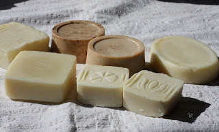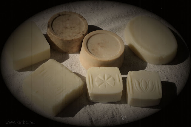 Hetek óta ezzel kelek, ezzel fekszem. Kismillió oldalt átolvastam, jegyzeteltem, kalkuláltam. Aztán beszereztem az olajakat, a lúgot, és nekiálltam. Eddig még csak ennyi készült, van köztük levendulás, natúr és tejsavós. A kecsketejeset a jövőhéten készítem majd el.