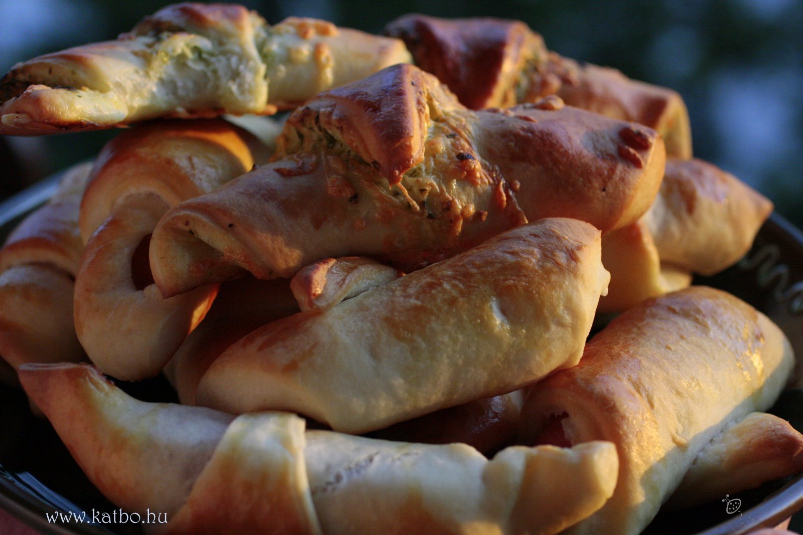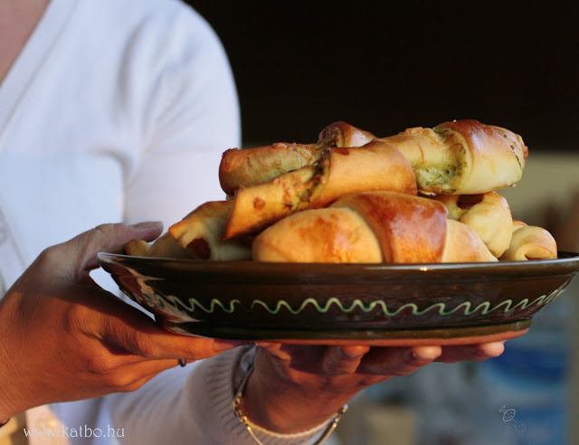 Amibe nem jutott virsli, azt megkentem medvehagyma pesztóval és reszel sajttal. Így tekertem fel őket.