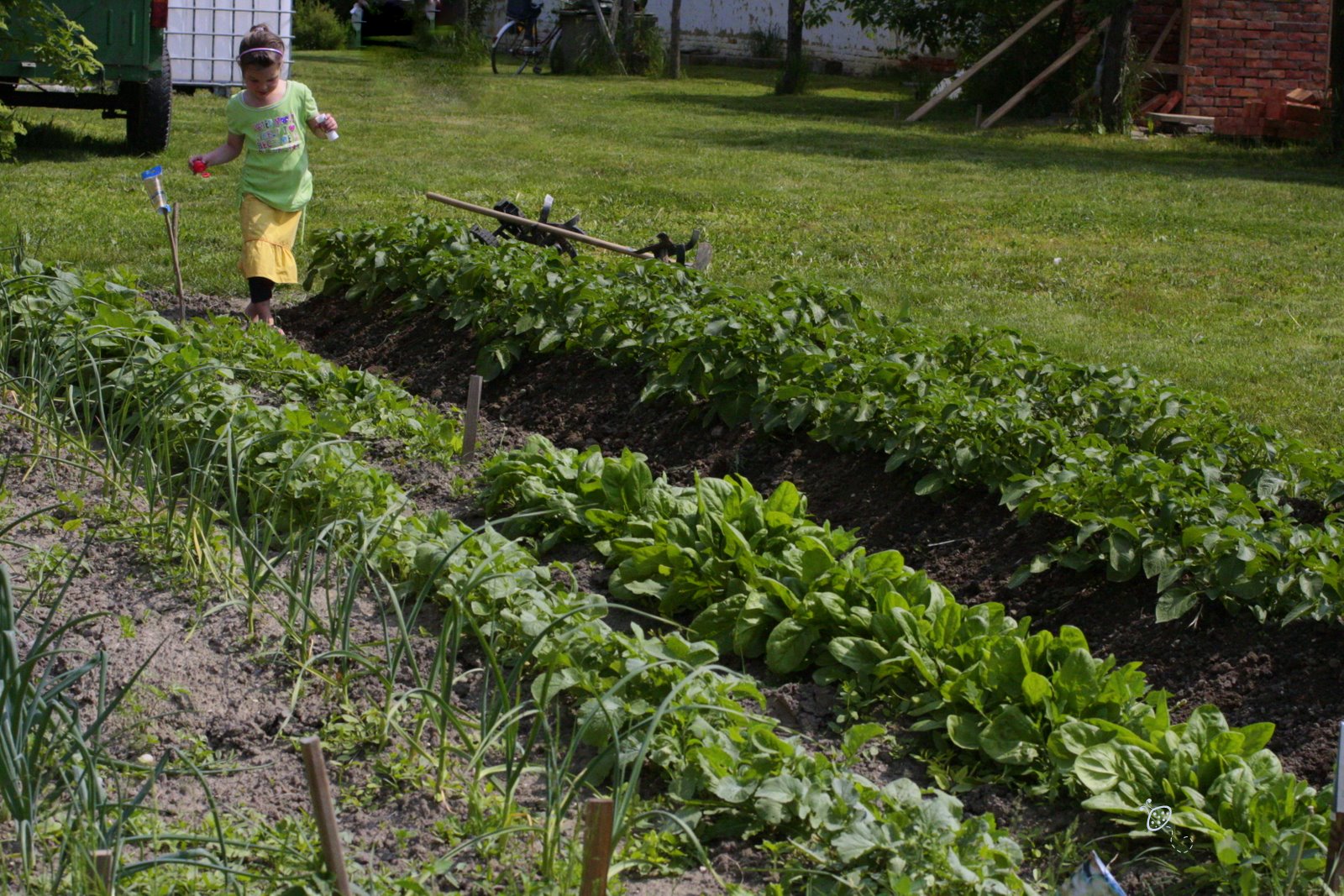 Nem készítettem a szépen rendbe rakott veteményünkről fényképeket. Még szerencse, hogy Panni kattintott egy párat, csak sajnos még a gazolás előtt. Na mindegy, ez van, akkor így mutatom meg, illetve így teszem el magamnak a naplómba.