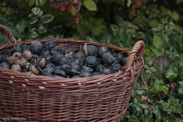 Közelebbről már jól látszik, hogy ez nem szilva, hanem a diószüretünk eredménye.