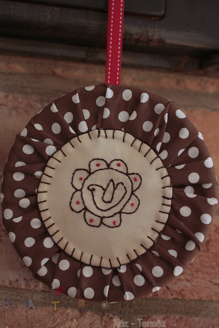 -1 db minta középre (lehet ez hímzés, illetve mintás agyag, de természetesen horgolás is)