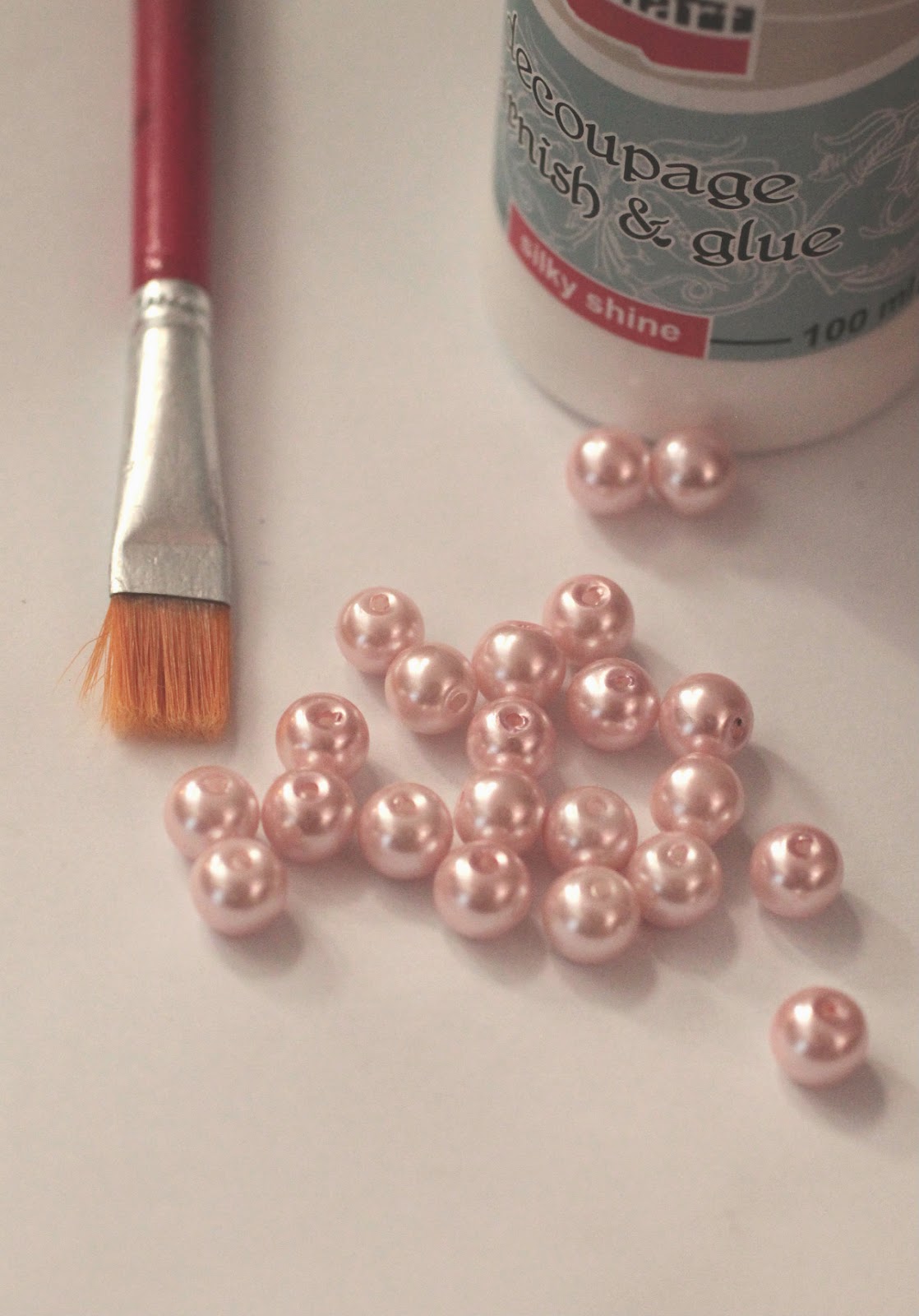 Hosszú tűvel áthúztam a golyón egy akasztónak való fonalat, amire rákerültek a gyöngyök is.