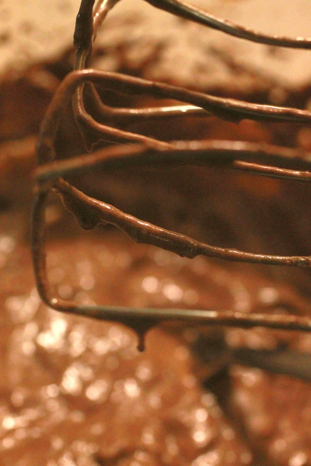 Felolvasztott vajban elkeverjük a csokit, a cukrot, a tojásokat, végül a száraz anyagokat.