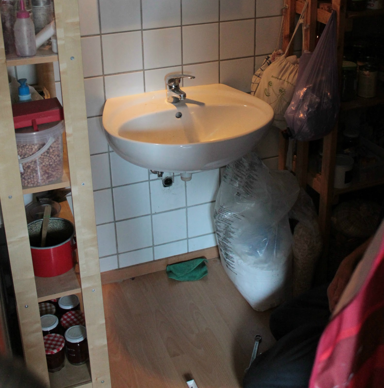 A régi konyhánkat én annyira nem szerettem, én mindig is kicsit rusztikusabbat szerettem volna, illetve az elhelyezkedése sem praktikus, hisz a ház legmelegebb pontján van a mostani kamra, ami korábban mosókonyha volt, tehát a stelázsik között mosdókagyló és tükör is van. :/