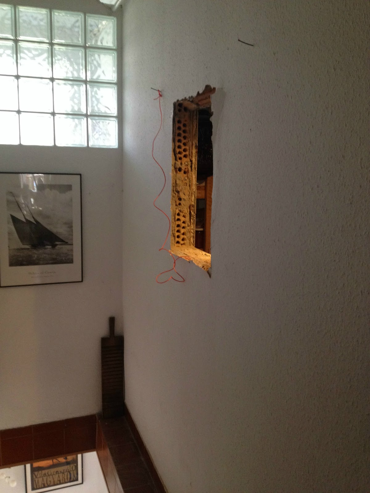 2. lépés a gipszkartonfal egy részének a kiszedése.