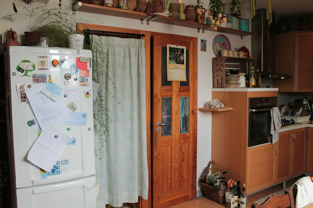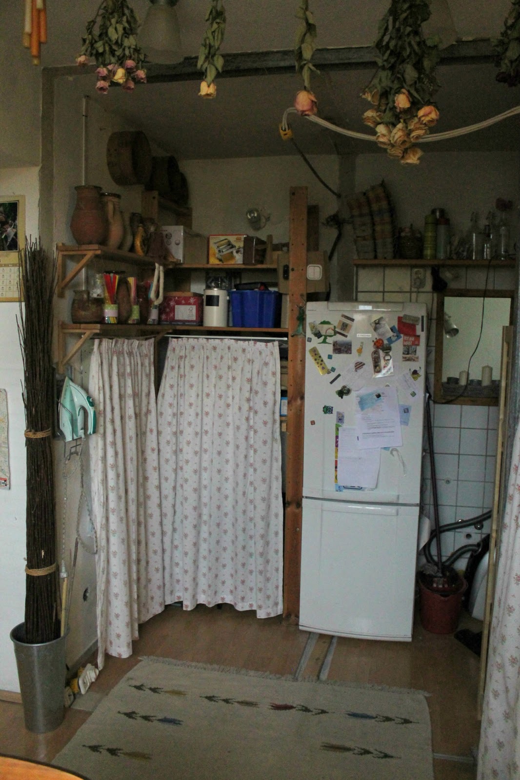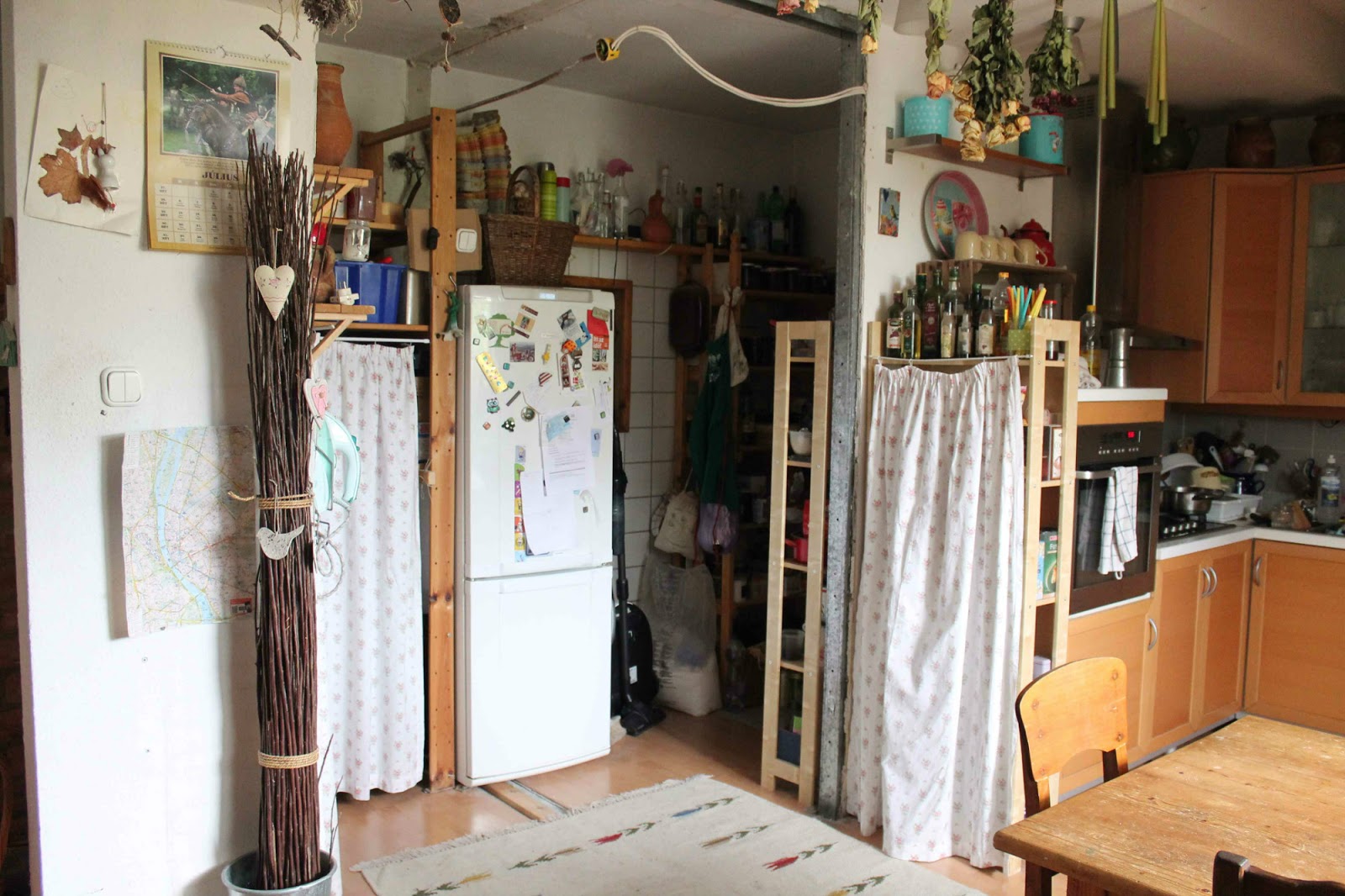 Tehát a következő lépés az új konyhapult, ami majd itt lesz a képen látható polcok, és hűtő helyén, de addig nekem még a műhelyemet kell gatyába ráznom annyira, hogy oda átmenetileg egy csomó mindent le tudjak cipelni, viszont ahhoz az kell, hogy a műhelyem megszabaduljon bizonyos nem odaillő gépektől, ami viszont nem rajtam múlik.