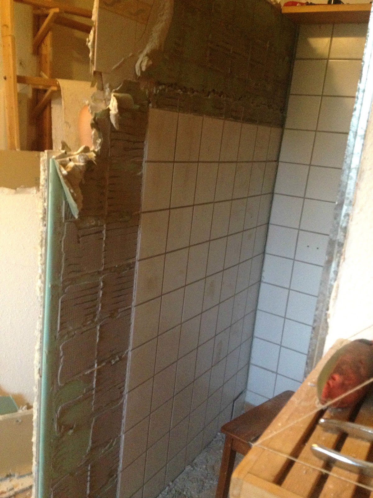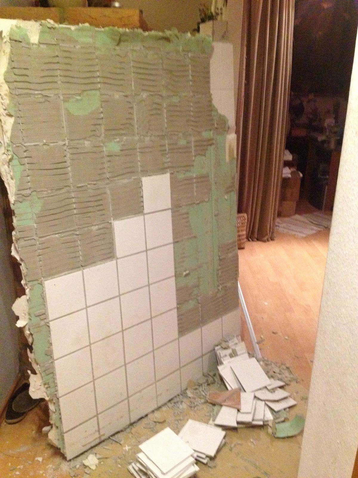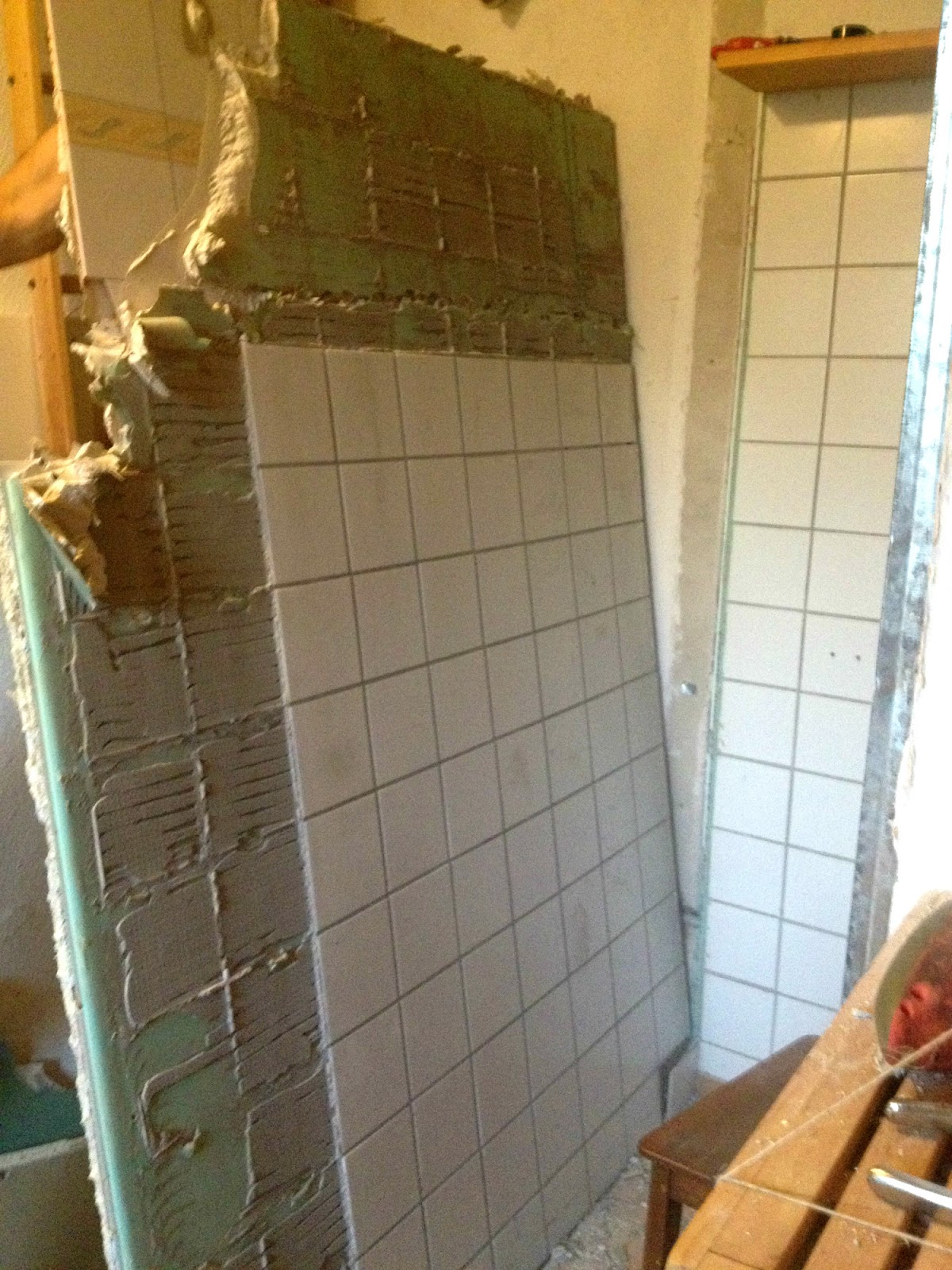 Olyan dög nehéz volt ez a fal, hogy mégsem lehetett egyben megmenteni, illetve megspórolni a csempe leszedését.