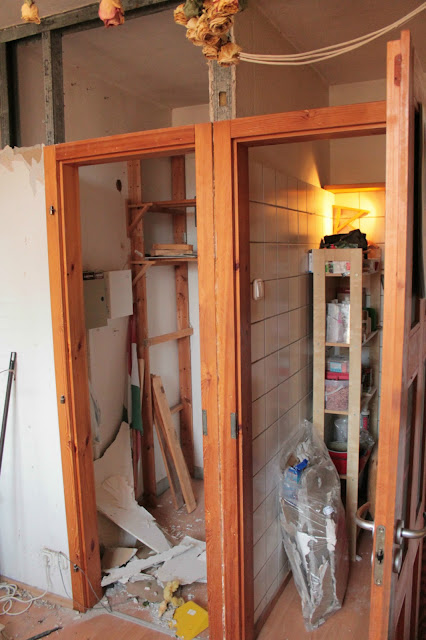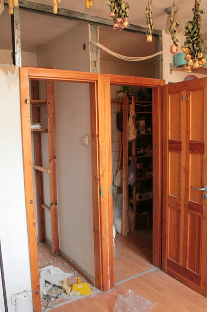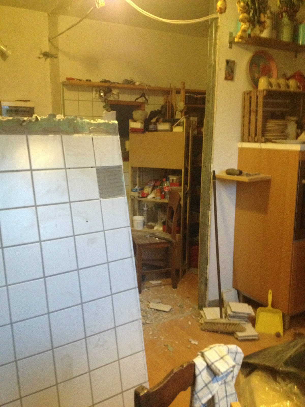 Utána jön tehát a konyhapult, majd ha Gábor el tudja vinni a régi konyhabútorunkat (mi akkor sem maradunk már konyha nélkül), és akkor neki tudunk állni a következő falszakasz bontásának, illetve az új kamrafal felépítésének.