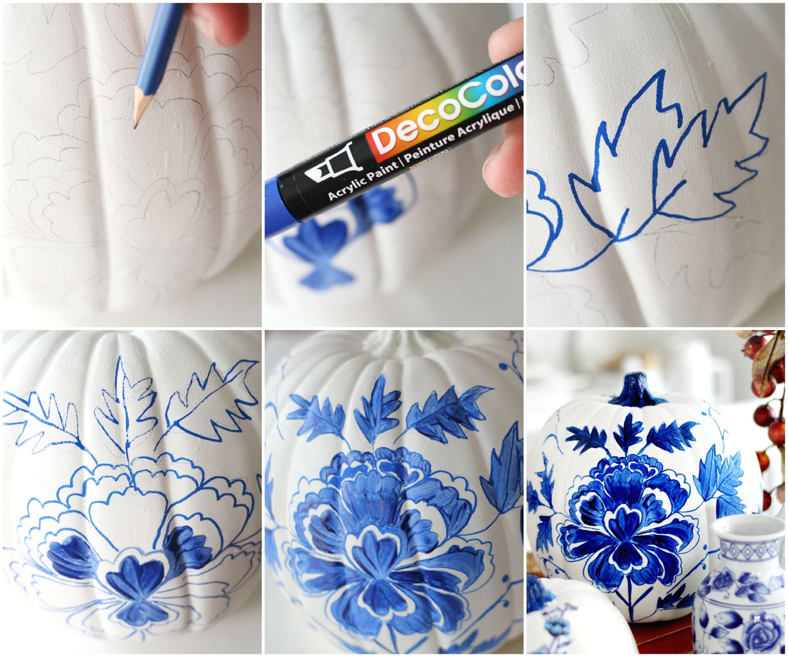 Mindkét esetben az első lépés, hogy fehér akril sprayt használunk a tök átfestéséhez.