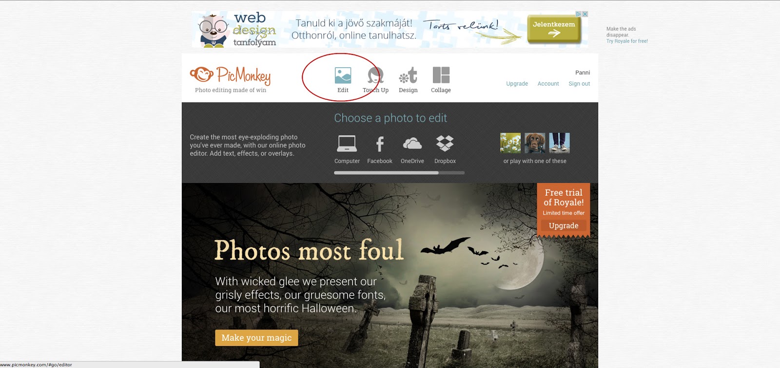 Ennek a képnek az elkészítéséhez a Picmonkey-t, ingyenes online képszerkesztőt fogjuk használni.