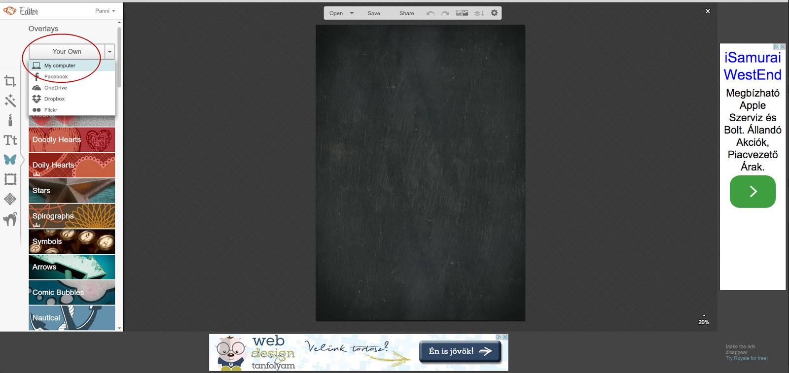 de lehetőségünk van a (“Your Own”) a saját számítógépünkről is behívni képet, mi most ezt fogjuk tenni.