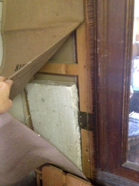 | Itt már lóg a két helyiség közötti ajtó lezárását megoldó antik tükröm. |