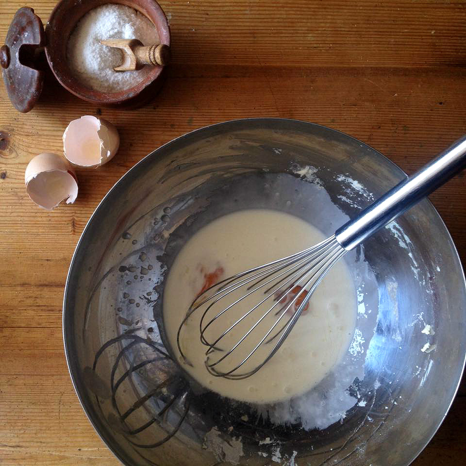 A tojásokat elkeverjük a tejszínnel