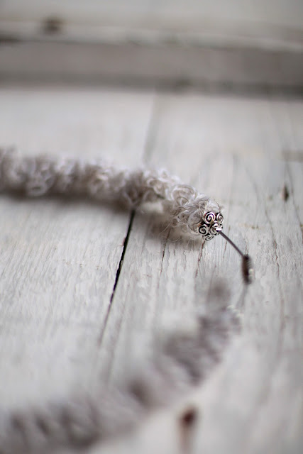 Hajszálvékony lenfonál és antik moher szál adja a lánc alapját.
