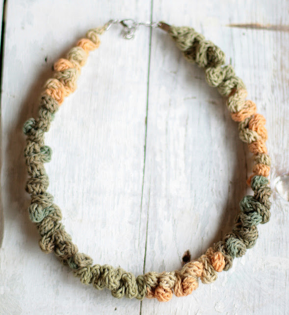 Ehhez a darabhoz magam festettem a fonalat, mert ez a megoldás egyrészt nálam elég kézenfekvő, másrészt teljesen egyedi, meg nem ismételhető ékszereket tudok így készíteni.