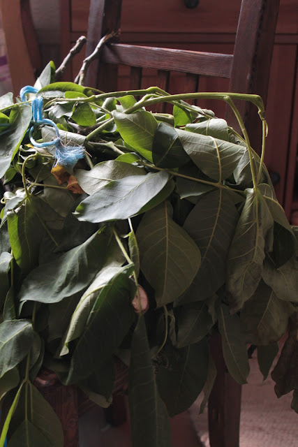 Szép csomaggá összekötve betuszakoltam a kisautóm hátuljába, és itthon lábosba raktam ágastól-levelestől.
