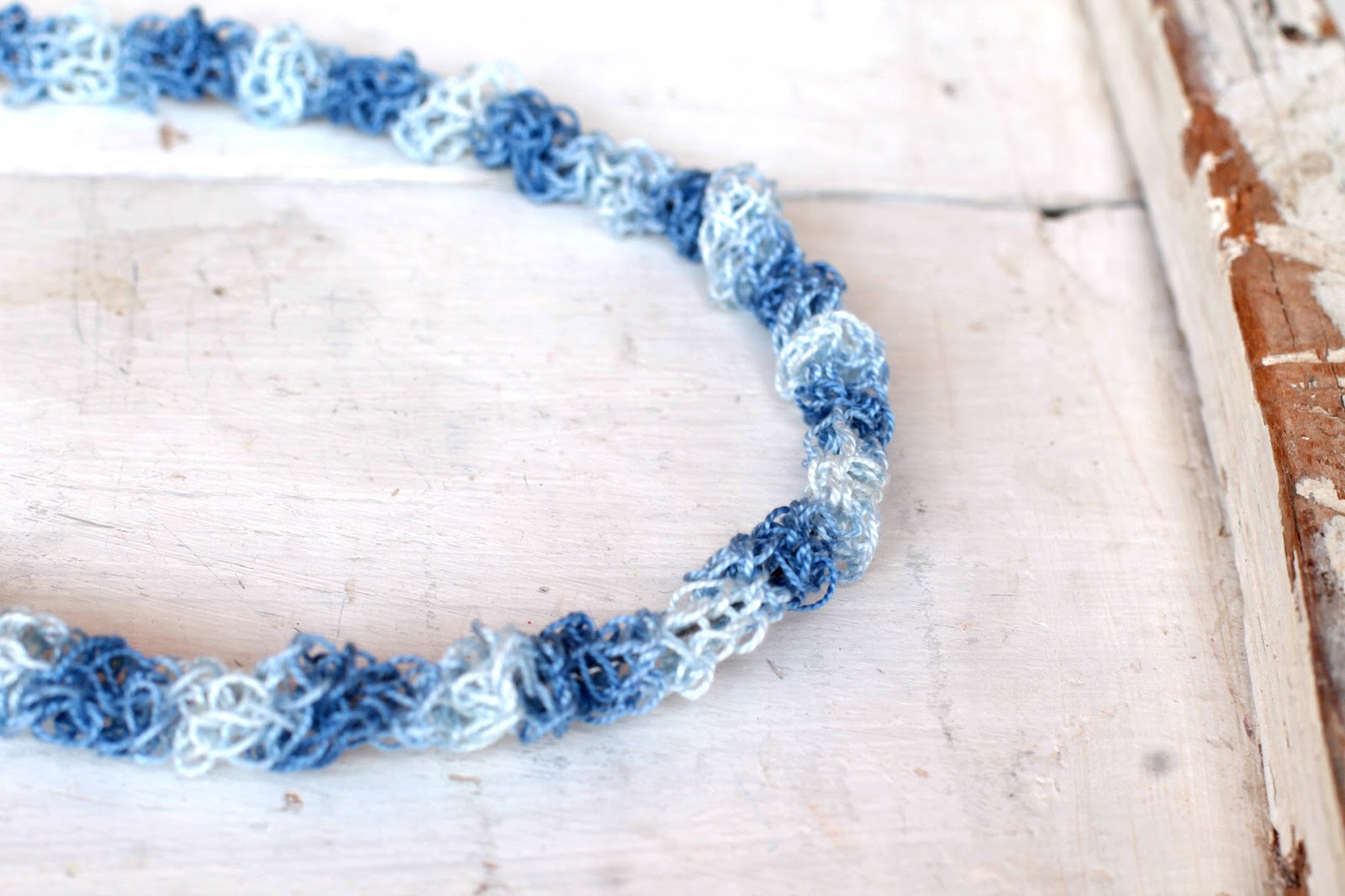 A rövid átmenetes festés miatt nagyon jó dinamikájú ékszereket lehet készíteni az ombre fonalakból.