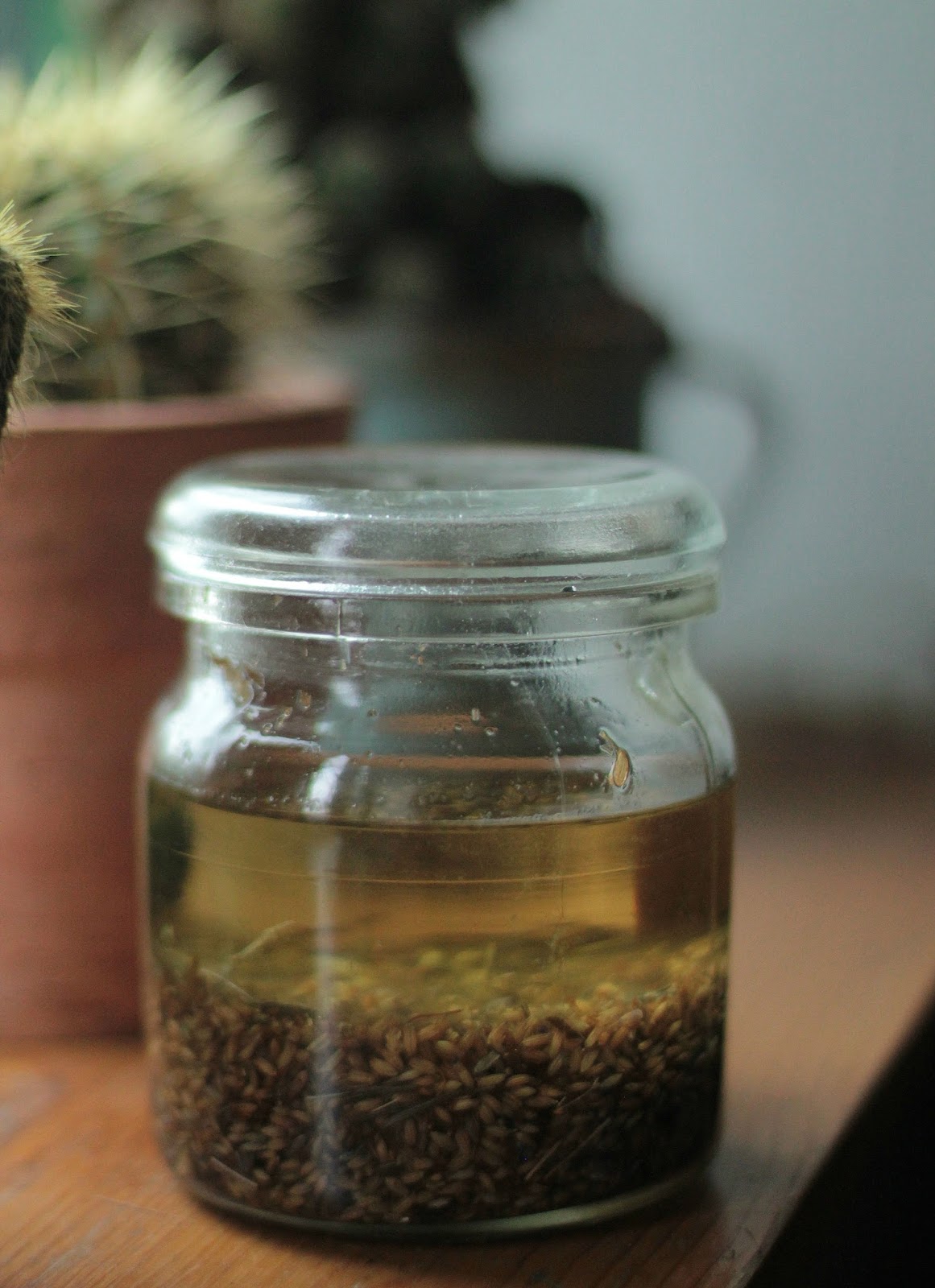 - Tölts fel az üveget valamilyen olajjal. Én olivaolajat használok, mert az önmagában is nagyon jó hatással van a bőrre. (A napraforgó olaj nagyon hamar avasodik, én ezt az olajat nem szoktam macerátum készítéséhez használni).