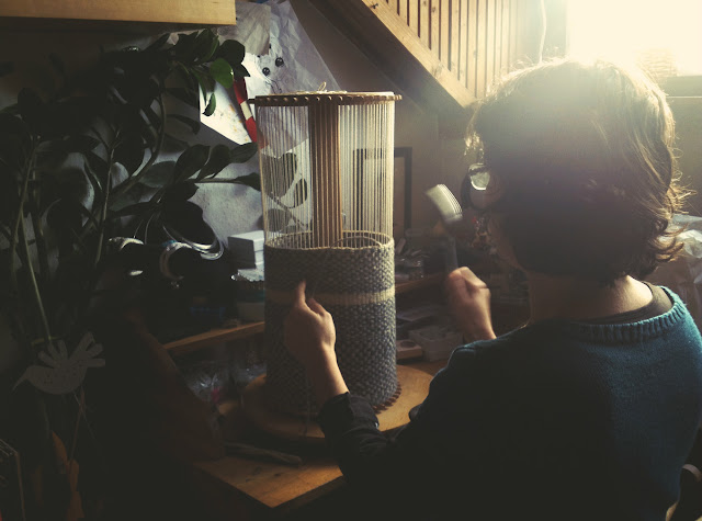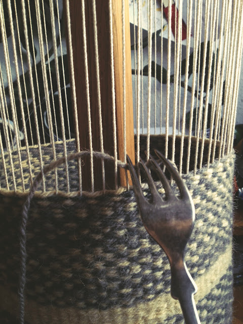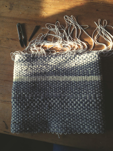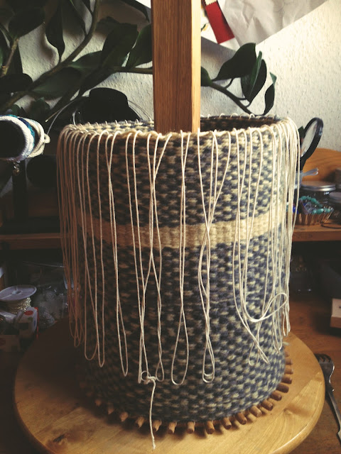 Nem tudtam mindenhol tartani az egyenletes szálfeszességet, ezért friss állapotában kicsit befelé tart a szövet,