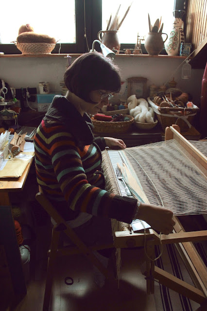 Végre volt időm felvetni a szövőkeretemet. Nem egy nagy munka a hagyományos szövőszék felvetéséhez képest, de csak a napokban kerítettem rá sort. Van egy nagy motring “aligfestett” kétágú gyapjúfonalam, ami a legútóbbi festét utolsó gombolyaga volt, maradék festékekkel festettem meg. Eleve “halálraítélt” fonal, erről tudtam, hogy ezt nem veszi meg senki, mert olyan kis halovány, olyan kis semmilyen. Úgyhogy nagyon jó lesz arra, hogy én készítsek belőle valamit. Semmi terv, csak annyit tudok, hogy széles felvetéssel akarok dolgozni. Semmi mintát nem szeretnék beletenni, csak a fonal halovány színvilága játszon benne kedvére. Most kezdtem, még sehol nem tartok vele, de nem kergetnek határidők, sem a tatár, úgyhogy majd egyszer csak elkészülök vele.