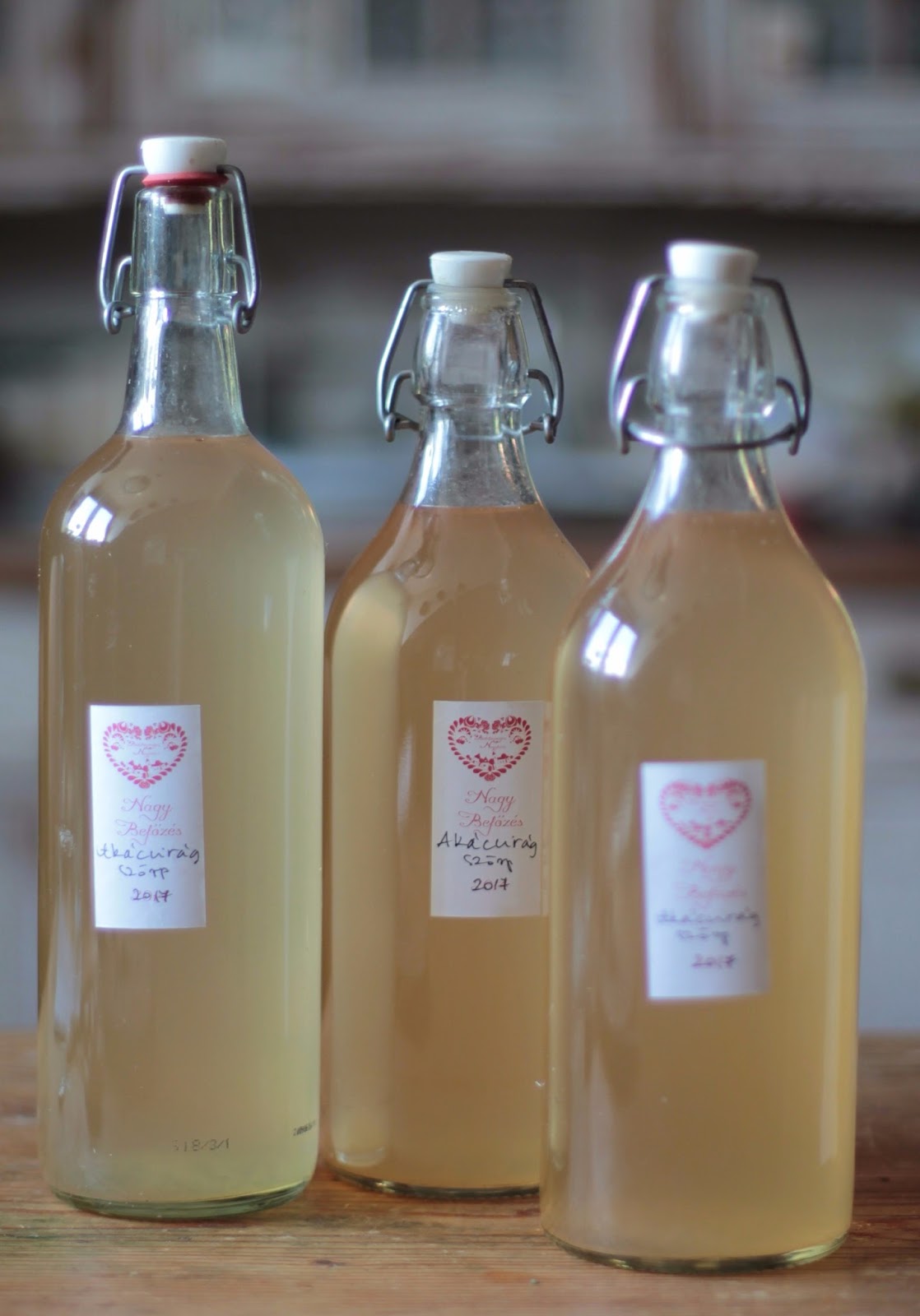 10 percig rotyogtatjuk a szörpöt, az esetlegesen keletkező habot leszűrjük, és forrón, fertőtlenített üvegekbe töltjük. Kidunsztoljuk. (Ruhák között hagyjuk kihűlni. )
